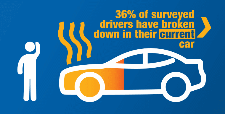 While none of us like to think about breaking down, it does happen. In fact, 36% of the drivers we surveyed have broken down in their current car - with the most common causes being battery failure, engine failure, or the car simply not starting.