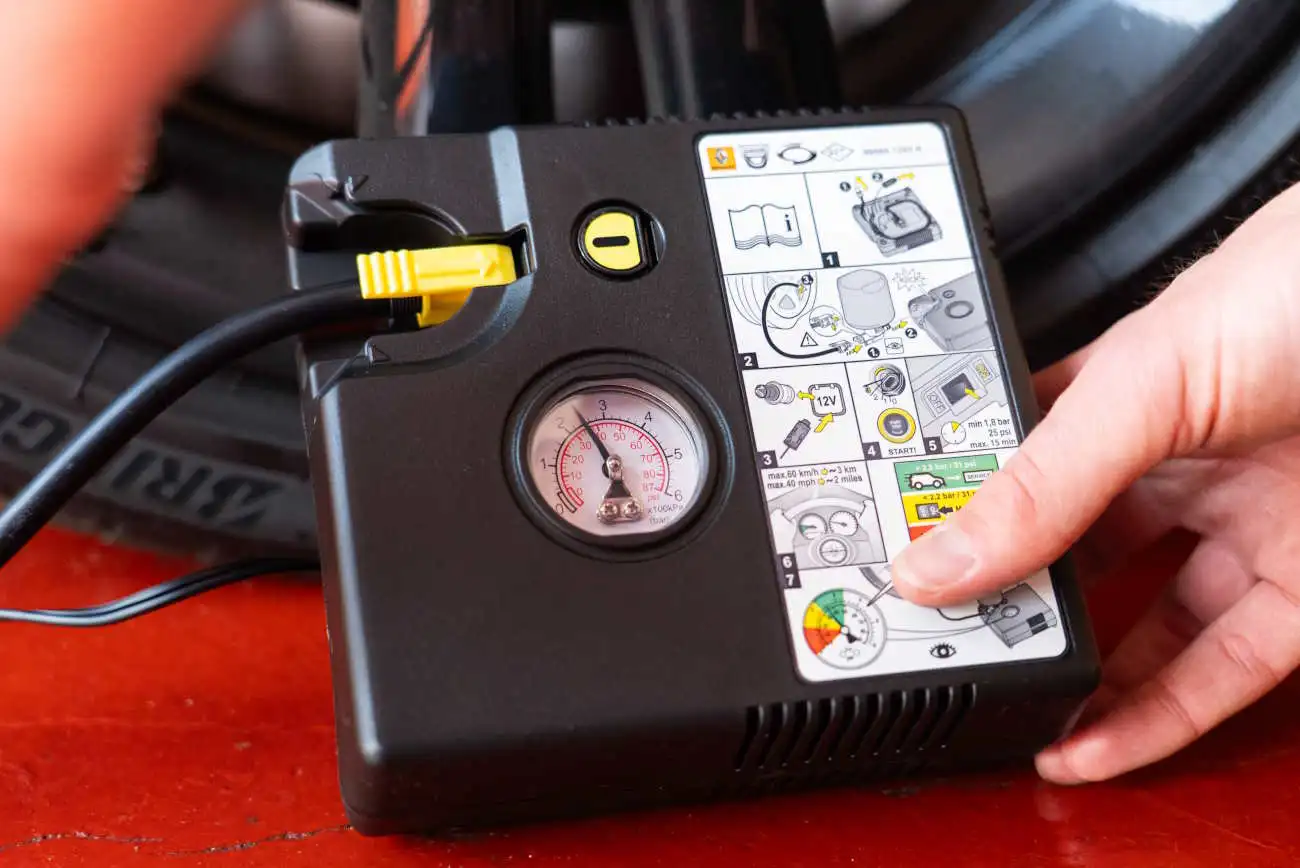 10. Check tyre pressure, either using a gauge or by visiting a garage. Get the damaged tyre repaired or replaced ASAP.